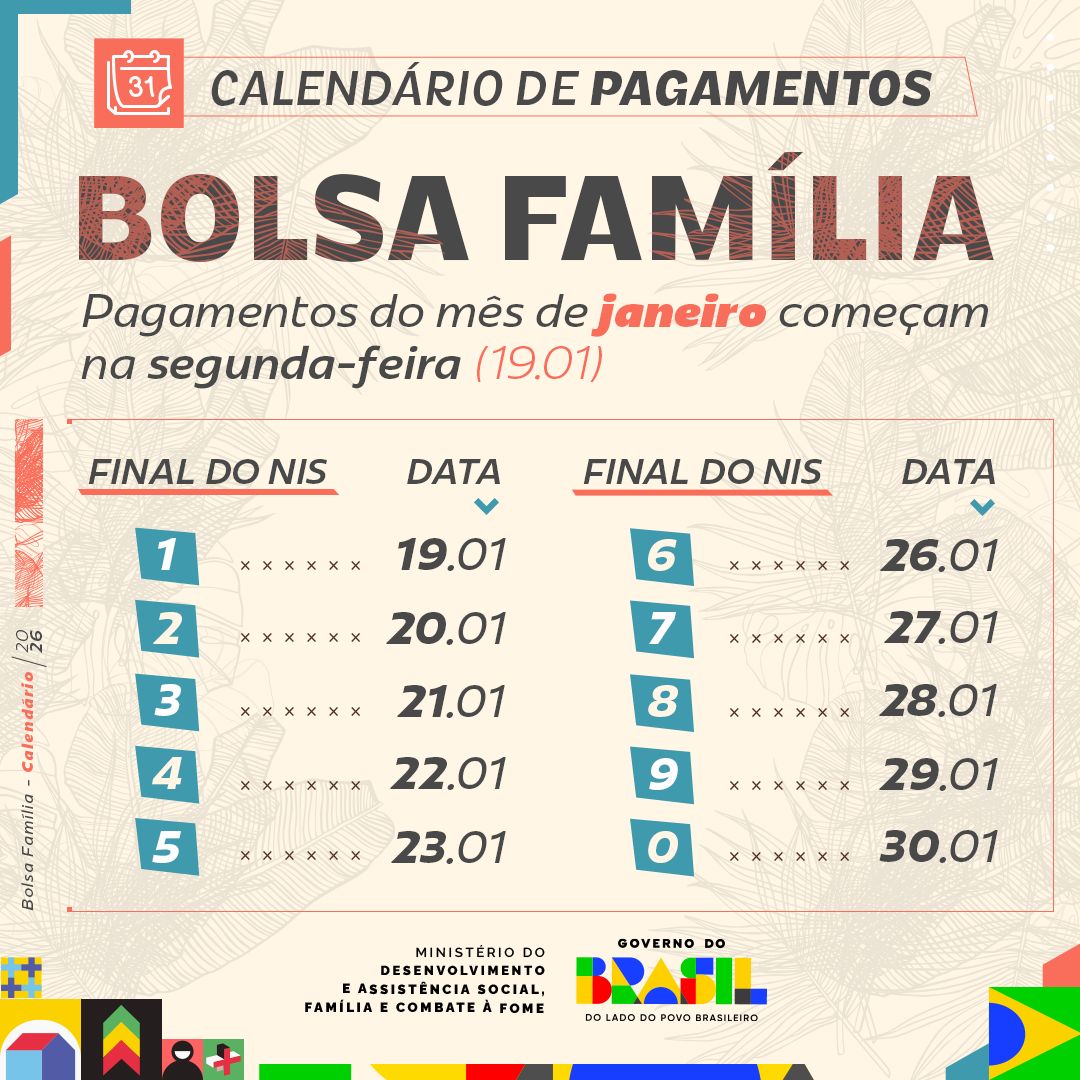 O Ministério do Desenvolvimento e Assistência Social, Família e Combate à Fome (MDS) já divulgou o calendário completo de pagamentos do Bolsa Família para o mês de fevereiro. Como de costume, os pagamentos são organizados com base no último dígito do Número de Identificação Social (NIS) dos beneficiários, ocorrendo nos dez últimos dias úteis do mês.